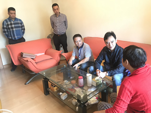 困难户刘志刚因身体残疾长年无业,徐健同志一行抵达他家后,便与刘志刚父母展开亲切的交谈,耐心地询问他们一家的健康状况、生活状况、收入来源、孩子入学状况和生活中遇到的实际困难,嘱托他们保持乐观的心态,及时向院里和社区反映生活中遇到的困难。困难户叶万蓉因病丧失生活自理能力,徐健同志一行到她家了解到她的健康状况、生活状况、出行状况后,叮嘱她保重身体,在社会各界的帮助下积极渡过难关。