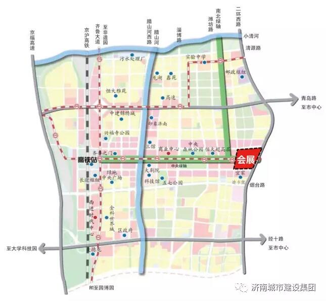 负责开发建设,项目紧邻宜家,东至二环西路、西至滨州路、南至日照路、北至威海路。包括一至三层梯级构成的会展中心、共三层的会议中心和44层的会展配套塔楼。项目建成后展厅面积超过10万平方米,是目前2万平方米的舜耕国际会展中心的5倍大,建成后将让济南拥有“10万平方米+”的一线会展城市标配。