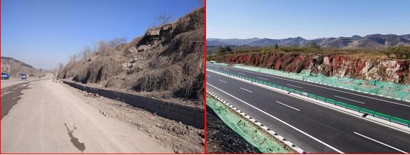 工程中央分隔带安装新型防眩网,颜色亮丽、美观大方,既隔离上下行车道,又防护夜间行驶车辆灯光,达到防眩和隔离的目的,为旅游大道增添了一道亮丽的风景线。