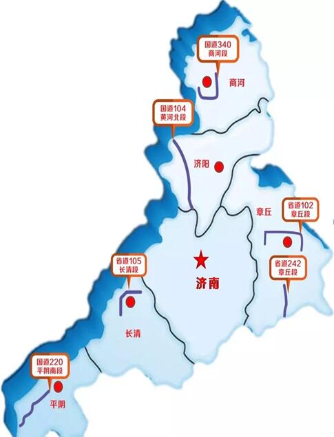 104国道改建工程全长29.7公里,南起天桥区大桥镇220、308国道交叉口,途径济阳,与青银高速相交于靳家互通立交,止于德州界。