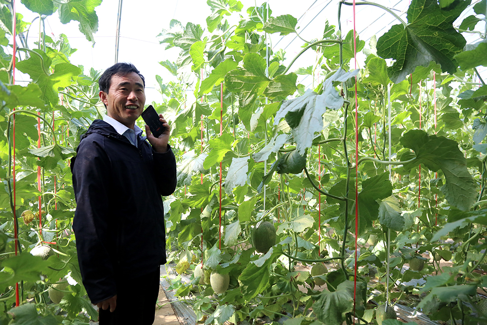 在哈密瓜种植棚里,陈德国已经电话安排好了本周六的采摘活动。现在正值采摘黄金季,前来植树踏青、大棚蔬菜瓜果采摘、园区观光的团队络绎不绝。