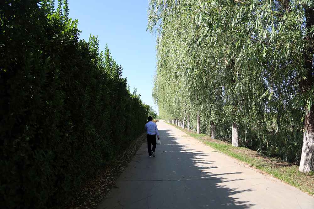 16:40赶往配菜室的路上,陈德国指着路边一棵柳树说:“这棵柳树在我刚入职的时候还是棵小树苗,三年时间,平时不会去注意它,但抬头一看,猛地就发现它已经变成参天大树了。”