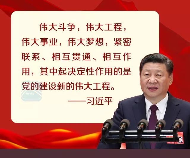 伟大斗争,伟大工程,伟大事业,伟大梦想,紧密联系、相互贯通、相互作用,其中起决定性作用的是党的建设新的伟大工程。
