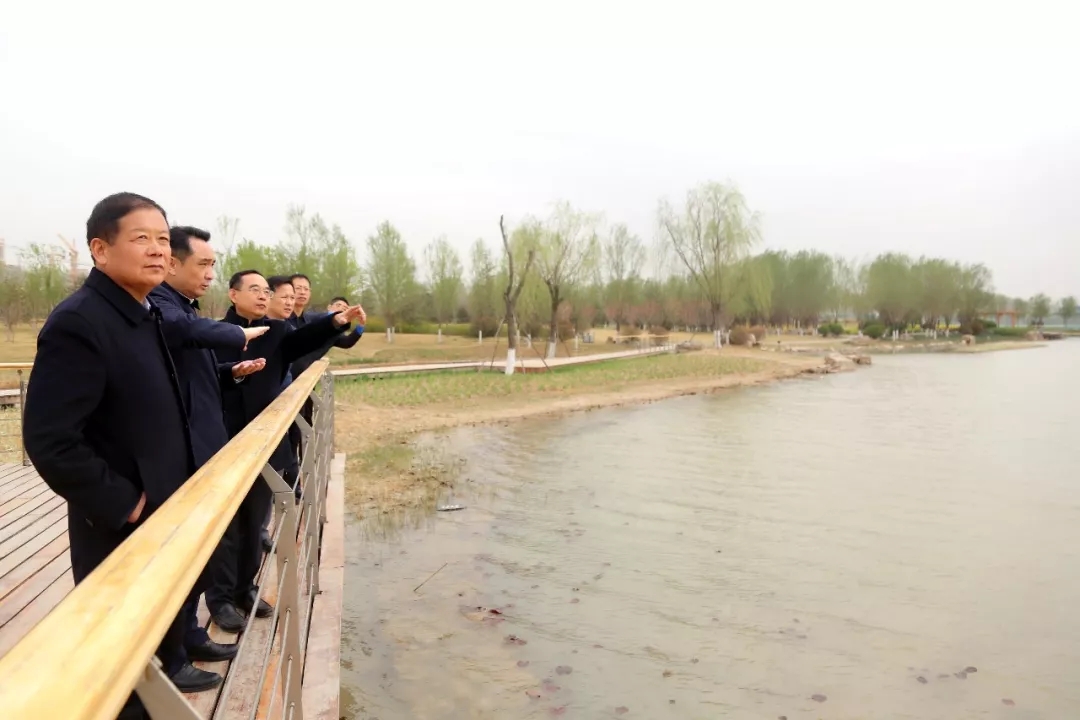 吕灿华一行首先实地考察了华山片区建设情况,华山历史文化湿地公园内已经建设完成的数百亩湖面、部分环湖道路、园林景观以及配套设施吸引大家驻足观看,吕灿华一行对华山片区近年来取得的巨大变化给予了充分肯定。
