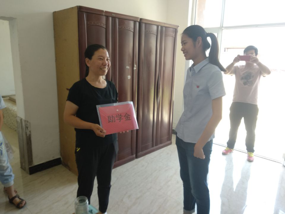 公司团委副书记刘芳延为杨健芝送上助学金