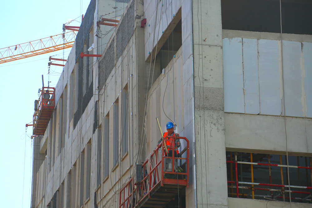 作为墙体的维护结构工作,内外墙二次结构施工是建筑主体结构封顶后的延续工作。目前,项目内、外墙等二次结构已接近尾声,屋面防水也已完成大半,以上两项工作预计4月底可完成。
