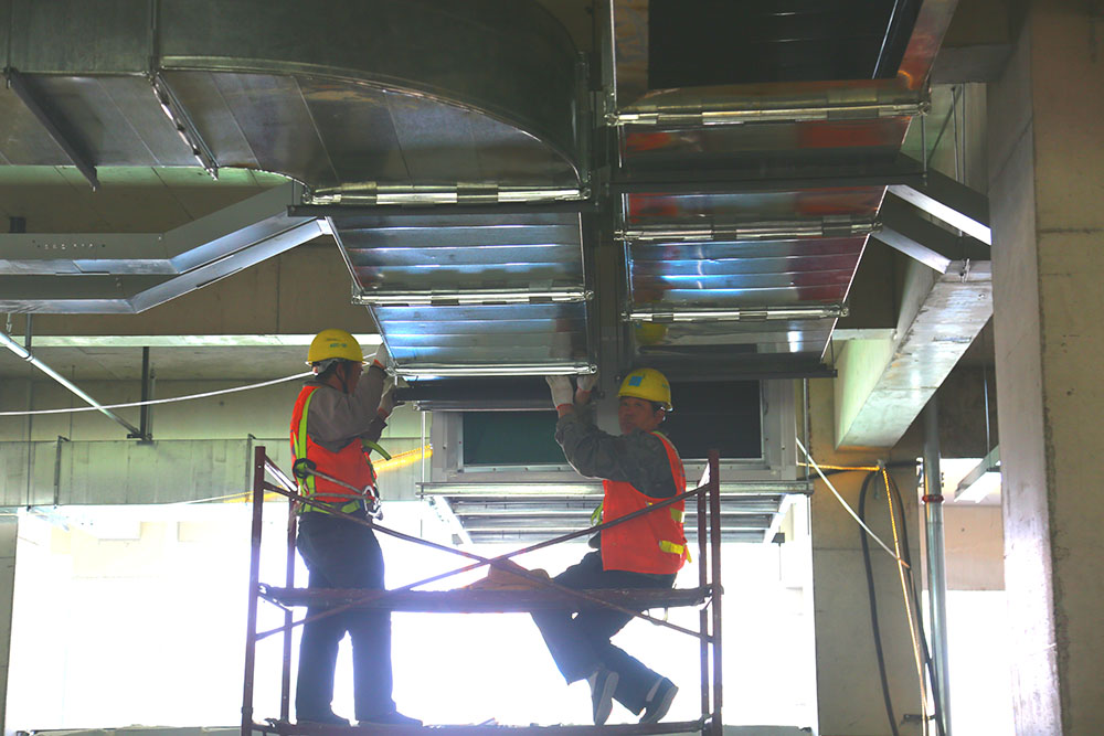 同时,室内通风、消防、安装装饰工程也已经全面展开,预计5月中旬可完成相关工作。室外雨水管、污水、给水、消防、供暖管完成过半,预计6月上旬完成。项目各项施工尤其是消防、通风、给水、雨水等环节,严格按照相关标准要求进行,切实保障校园安全舒适环境。