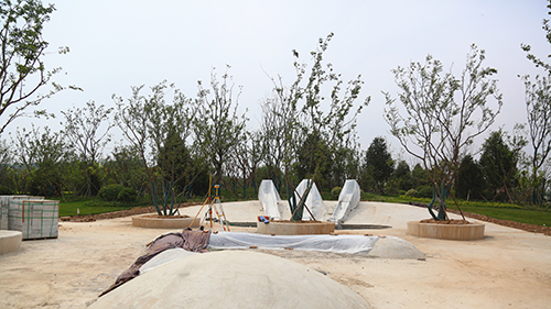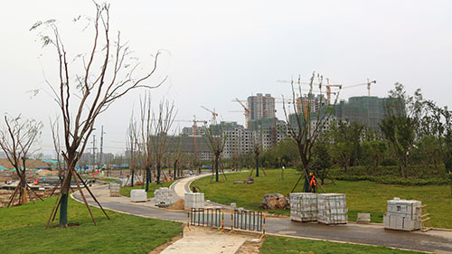 目前,园林一期A区已经基本建设完毕,进入收尾阶段。B区正在紧张建设中,作为定位人与自然和谐相处的城市滨水区,现场的林荫广场、游船码头、儿童欢乐天地、亲水沙滩、台地广场、音乐喷泉等配套服务设施已现雏形,预计6月底主体建设完工。C区位于华山正南方,处于整个湿地公园的中轴线和桥梁连接部位,定位为历史文化区,也是整个湿地公园的主入口区,为三个区域中占地面积最大的区域,近期也将启动建设工作。