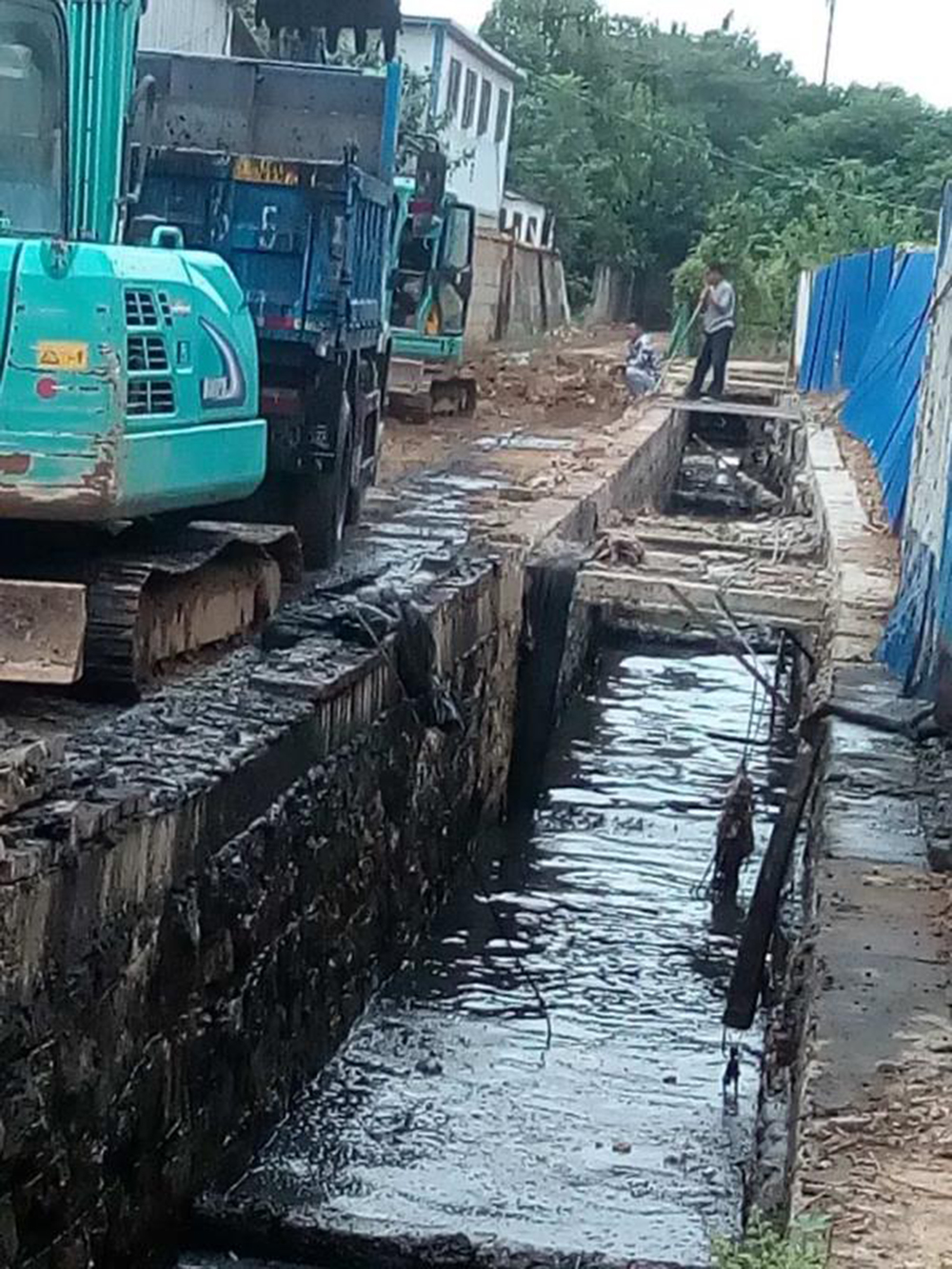 济空四站边沟是由拖机路自东向西的一条雨污混流的沟渠,主要污水来源为附近居民的生活污水,全长约1.56公里,断面为1.6×1.8米,大部分是路面下的暗沟,约600米为明沟,明沟内垃圾、淤泥沉积,黑臭水不断,黑臭等级为重度黑臭水。