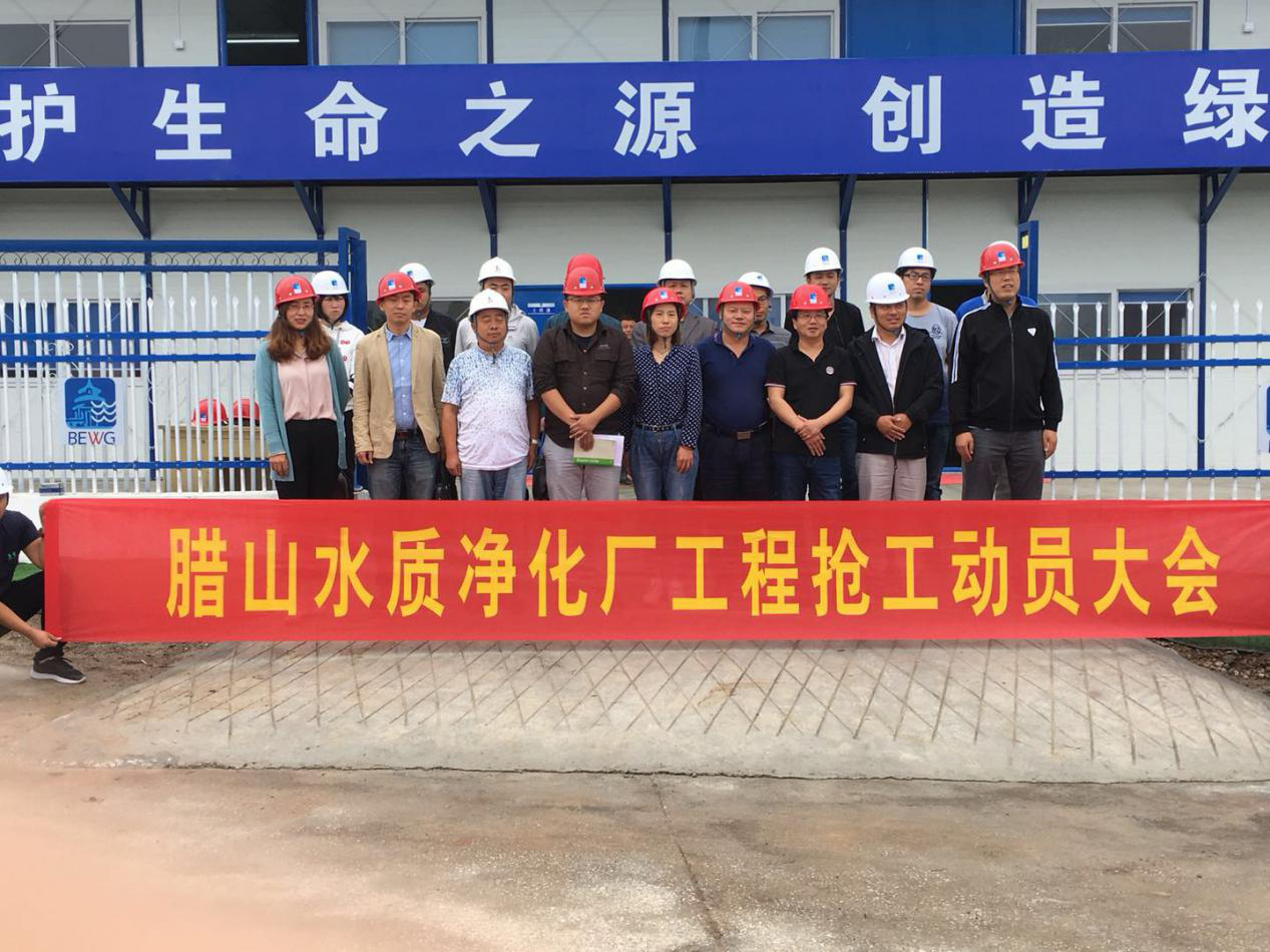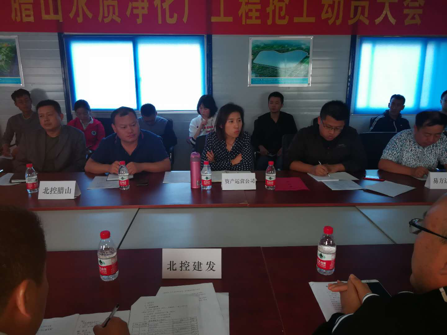 2018年9月20日(星期四)上午,在济南腊山水质净化厂工程施工现场,济南北控腊山污水处理有限公司组织召开了工程抢工动员大会,资产运营公司作为政府出资人代表,参加本次动员大会。