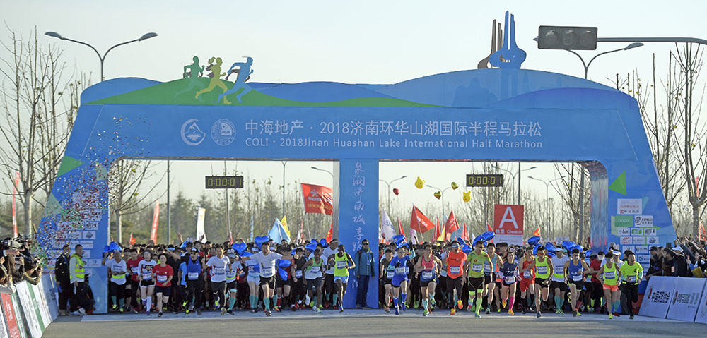 经过激烈角逐,男子组前三名分别由枣庄选手李子成和两名肯尼亚选手获得,女子组前三名分别由辽宁选手王佳伟和两名济南选手获得。除了半程马拉松,赛事还设置了迷你马拉松(5公里)以及家庭亲子跑,大家共享了运动的快乐。来自国内外的5000余名跑马爱好者在华山湖畔用脚步丈量华山生态人文新城,感受“齐烟九点”和“鹊华烟雨”的魅力。