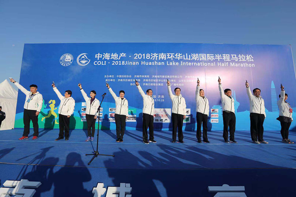 10月28日上午8点,中海地产·2018济南环华山湖国际半程马拉松在济南华山脚下鸣枪开跑。来自24个省区市的5000余名跑友以及13名国外选手参赛。山东省体育局局长李政,济南市委常委、宣传部部长杨峰,副市长王桂英,历城区委书记吴承丙,济南日报报业pg电子