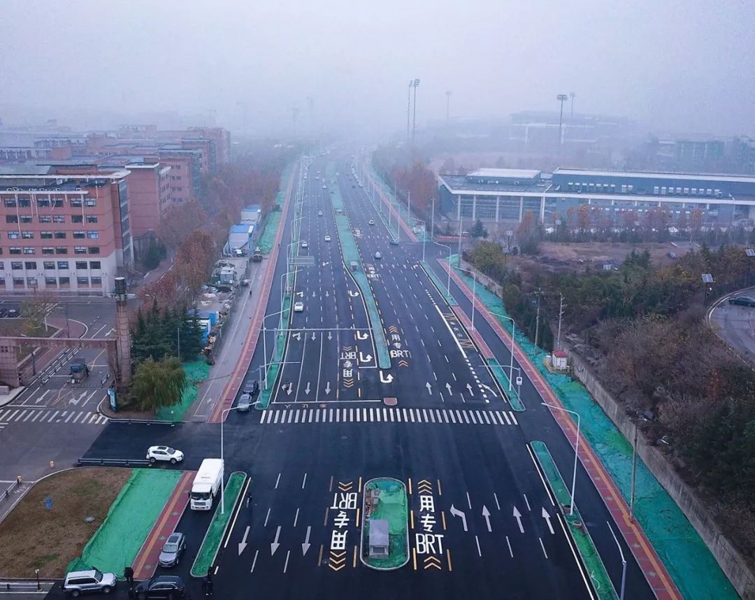 所属济南金宇公路产业发展有限公司负责经十路凤鸣路路口至工业北路凤鸣路路口路面标线施划,采用安全系数强且环保的新型双组份材料对该路段进行施工,让生命更安全,让济南天更蓝!