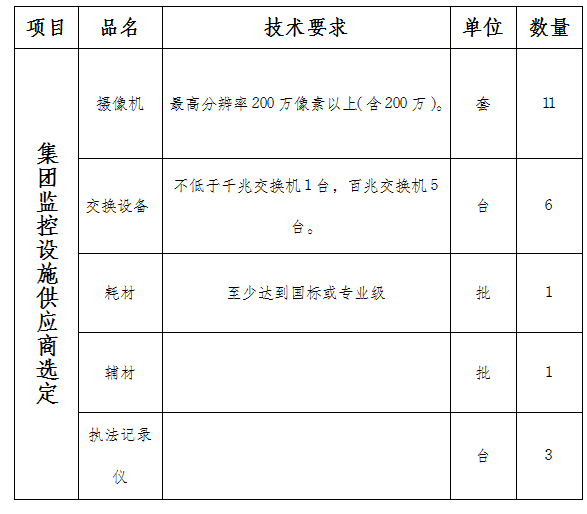 增加监控设施供应商选定项目进行询价,有关事项通知如下,欢迎各单位参加报价。