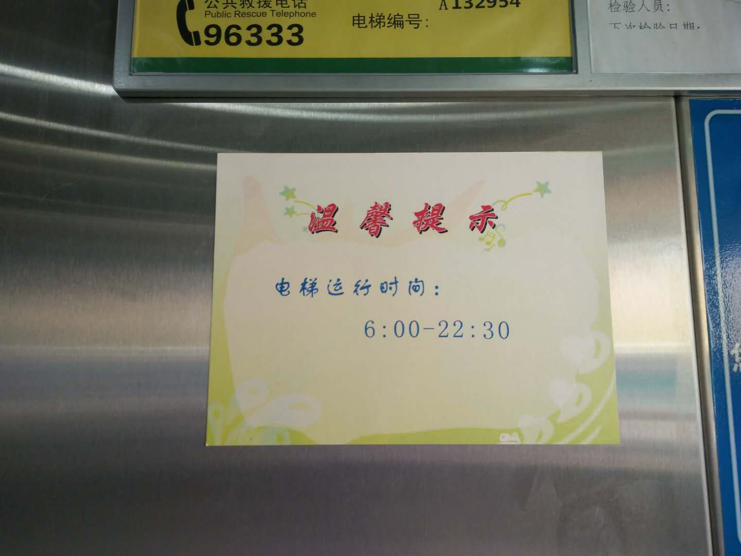 人行天桥6座电梯原运行时间为早晨6:00至夜间21:00。自2018年6月1日起,公司运维管理人员增加工作时间,将电梯夜间运行时间延长至22:30。
