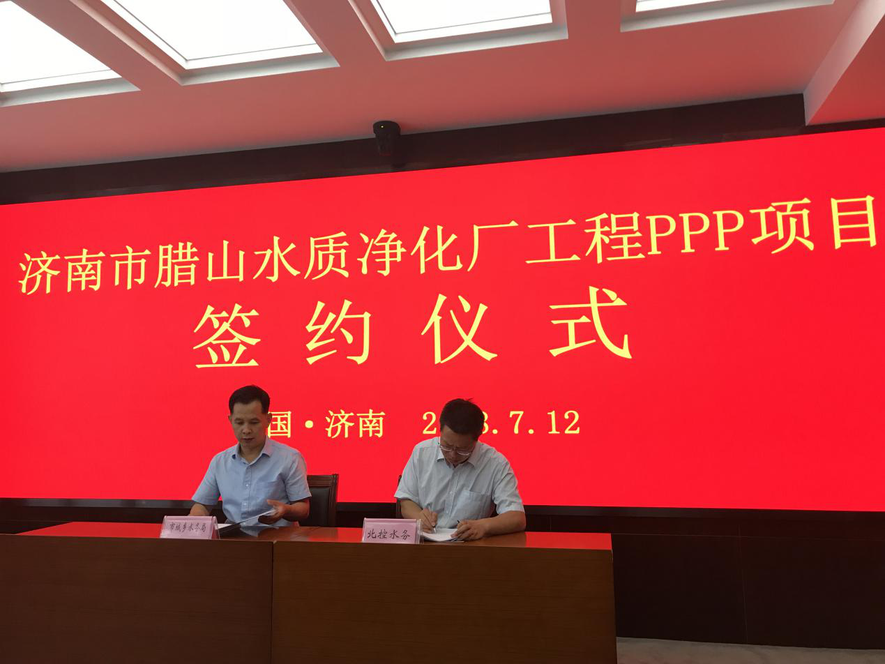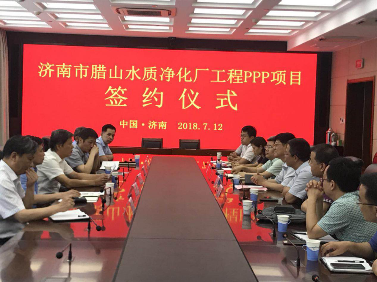2018年7月12日上午10点30分,在龙奥大厦G1407会议室,市城乡水务局举行了济南市腊山水质净化厂工程政府和社会资本合作(PPP)项目签约仪式,与中标单位北控水务(中国)投资有限公司签署了ppp项目合同。会议由市城乡水务局排水处处长汤启刚主持,市城乡水务局副巡视员朱丹彤做出重要讲话,资产运营公司副总经理李琰、北控水务东部大区总经理于良法先后发言。