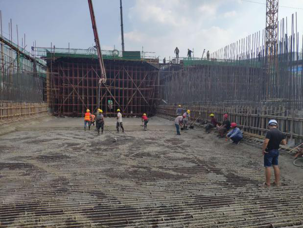 根据市委、市政府工作部署,车脚山隧道南洞口与二环南东延快速路匝道连接段纳入凤凰路工程,采用箱涵加地面道路组合形式,长约720米。工期紧、难度大,在各参建单位的大力支持与配合下,不断攻克难关,工程顺利有序开展,现阶段东线箱涵底板施工60余米,西线箱涵底板施工30余米。