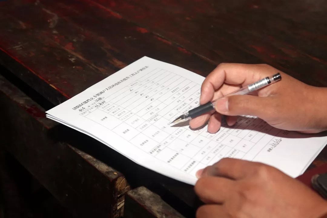 9:30张庆红来到贫困户路来财家中,对照济阳区建档立卡贫困户人居环境改善提升工程人户调查表对其房屋进行对照排查,得知有房屋漏雨的情况后,对房屋有破损的区域和损害程度进行详细记录并上报,及时为贫困户修缮房屋,解决实际问题。