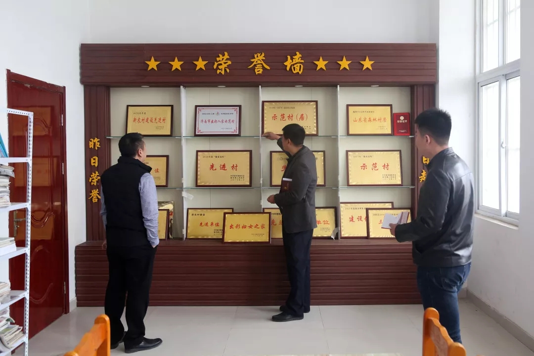 “看能不能把这荣誉墙给扩展一下,现在已经放不下了”,张庆红向广告公司制作人员说。近年来,路楼村先后获得省级文明村居、省级森林村居,济南市出彩人家示范村、市级卫生村、“脱贫攻坚”示范村、新农村建设先进单位等称号,张庆红也获得优秀第一书记、脱贫攻坚先进个人等荣誉。