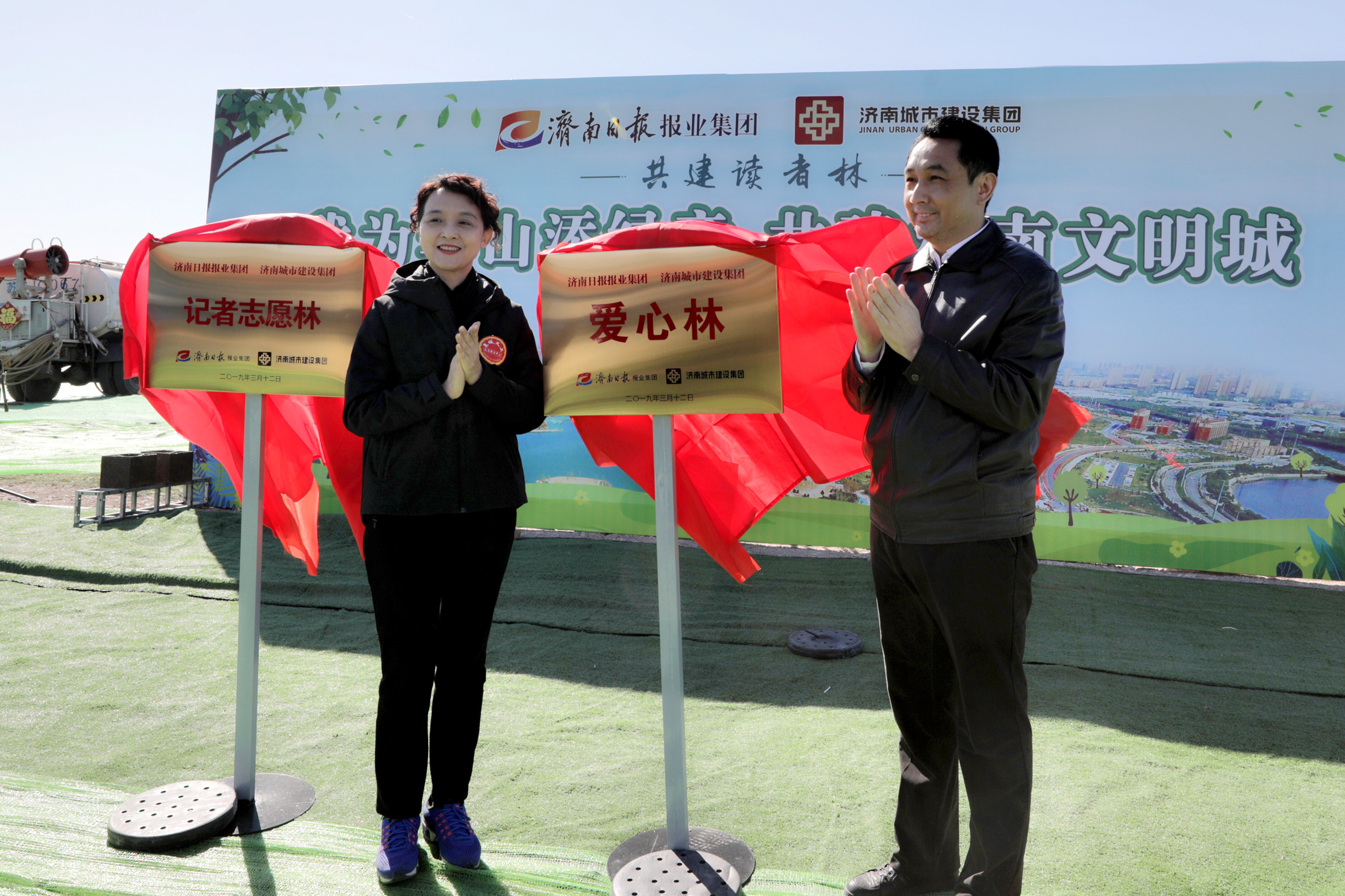 董事长、党委书记、济南日报社社长马利共同为“记者志愿林”和“爱心林”揭牌。