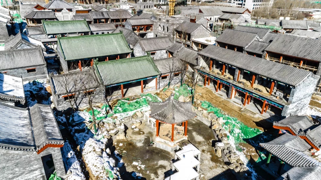 正在建设冲刺中的老济南街,兼具明清与民国风情的各色建筑韵味初显,亲王府、城隍庙、城门楼、书院、医院、警察局等各类建筑一目了然,园区氛围日益浓厚起来,不久的将来,这些场景都将会出现在影视作品中。现场施工负责人表示,现场正在开足马力抢工收尾,目前园区内共有500余名工人在不同区域,进行各个单体围墙施工、管道及地面铺装、城墙砌筑与热力等工作,确保4月15日项目主体工程竣工,达到可拍摄条件。