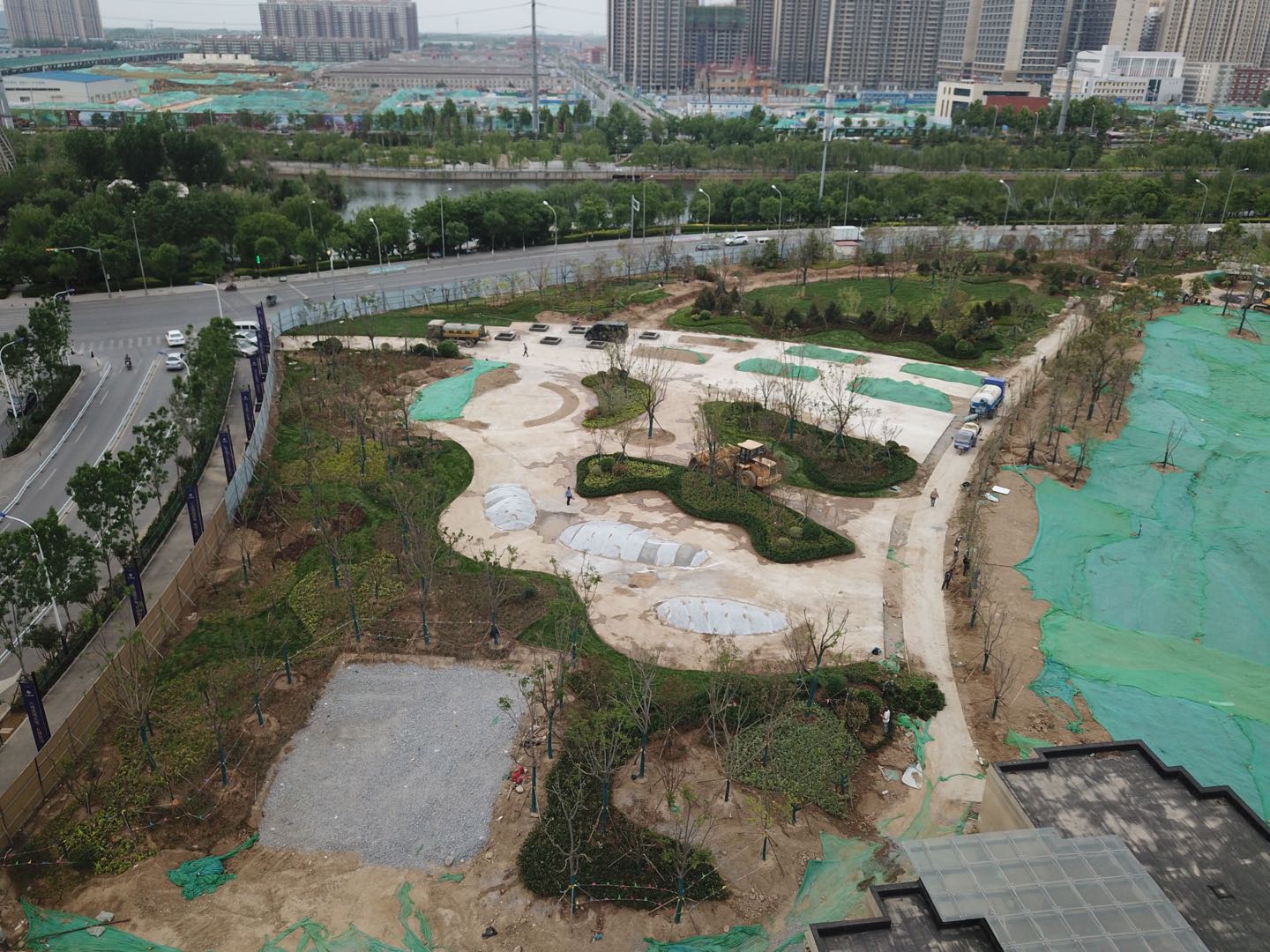 项目自4月底进场施工以来,已完成拆迁并具备施工条件的区域正全力推进建设中,目前正进行湖区土方外运、公园绿化景观打造、园路混凝土浇筑、广场基础开挖、游船码头开挖基槽等工作,6月底具备初步景观效果,7月对湖区(已完成拆迁区域)进行注水后将形成6.5万平方米湖面。