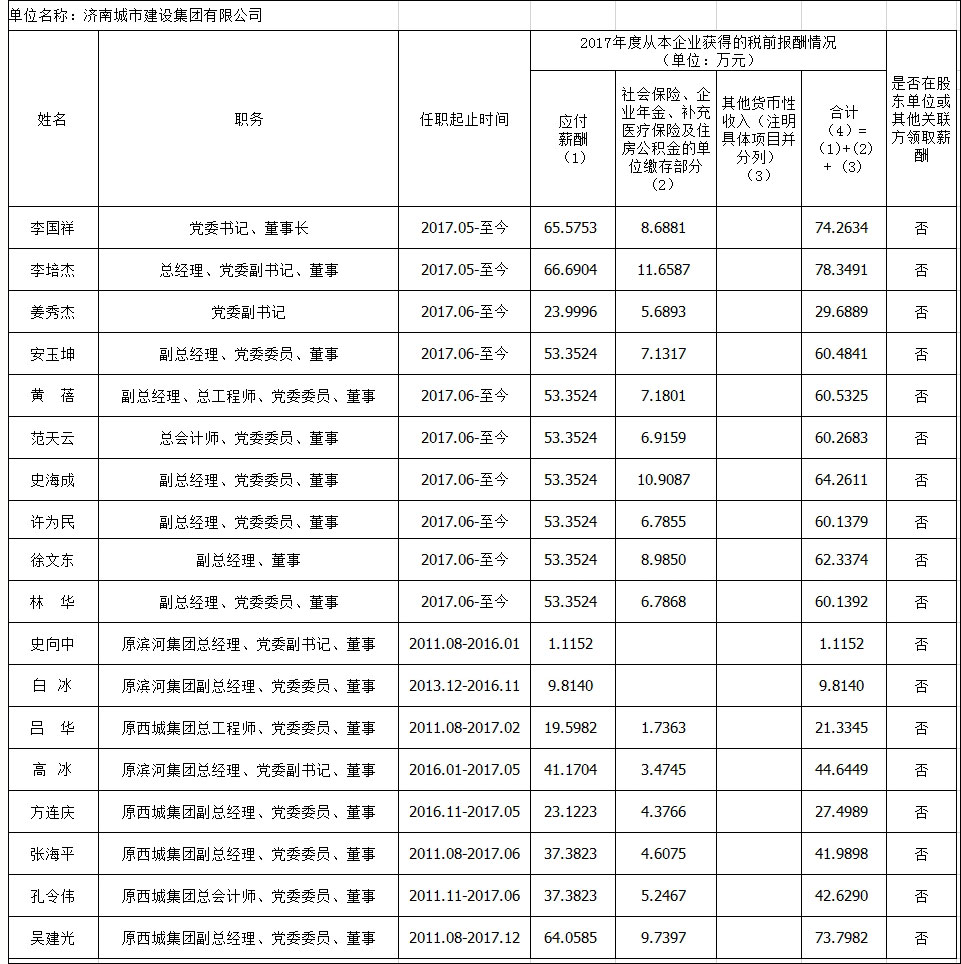 市属国有pg电子2017年度pg电子负责人薪酬情况一览表