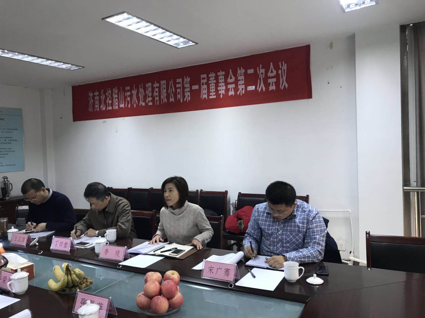 会议于2018年9月4日在济南中科成水质净化公司二楼会议室召开,会议由济南北控腊山污水处理有限公司董事长丁曰堂主持,参加会议的有资产运营公司副总经理兼北控腊山污水处理有限公司董事长李琰、北控腊山污水处理有限公司总经理乔荣民 、资产运营公司兼北控腊山污水处理有限公司监事宋广骞 、北控腊山污水处理有限公司副总经理史明文 、徐鹏、财务总监张翠萍;综合部王丽娜、潘林依等。
