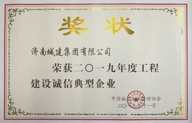 荣获“2019年度工程建设诚信典型pg电子”称号。