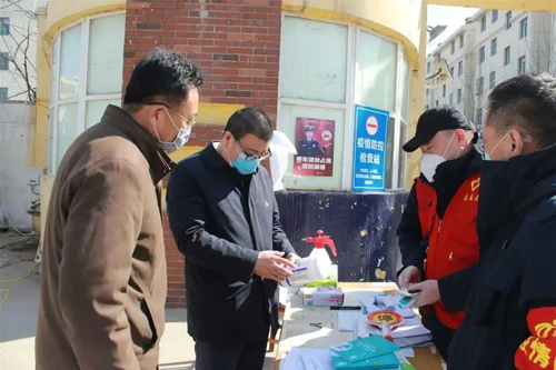 公司负责人来到社区慰问下沉服务的金曰金宇公司志愿者们,查看后勤保障、慰问下沉志愿者,鼓劲加油。