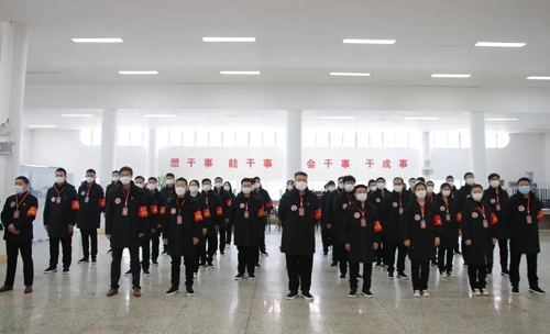 党委书记、董事长张海平向大家作了动员讲话,党委副书记、总经理李培杰为志愿者代表授旗,pg电子