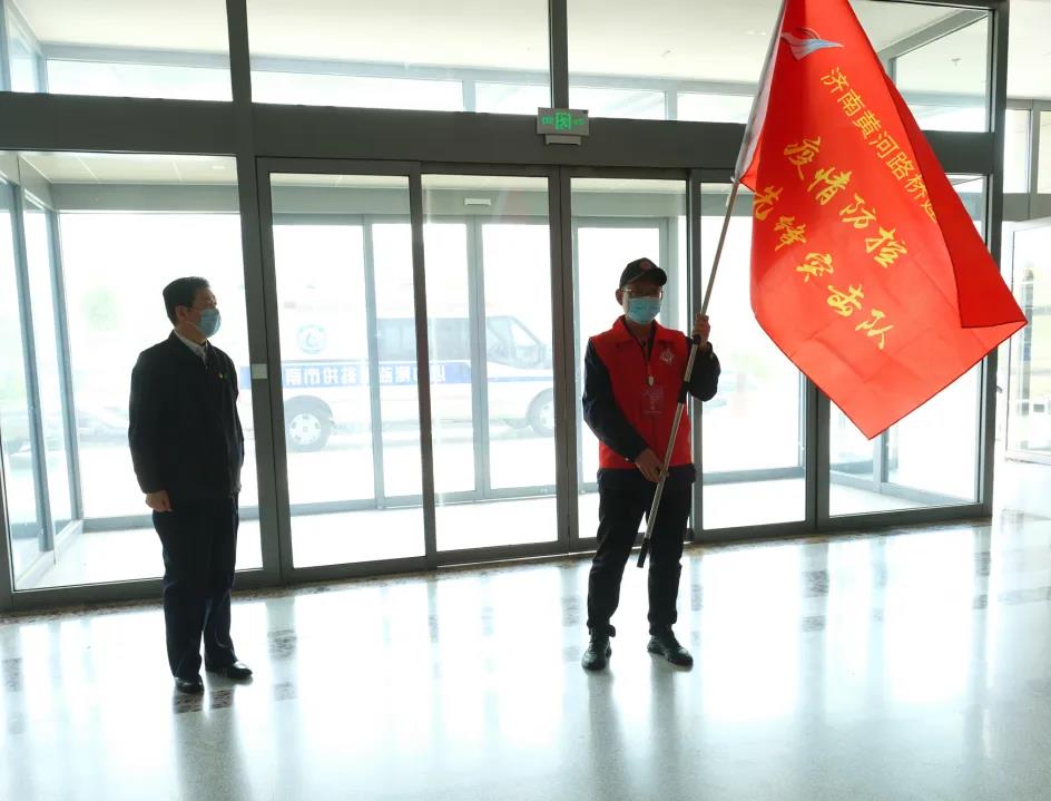 第九批下沉社区一线志愿服务疫情防控工作动员大会召开。由黄河路桥48名干部职工组成的第九批防疫志愿服务队,会后奔赴济阳社区一线,与第八批工作组成员进行工作交接。