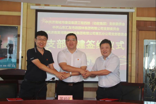 园林公司党支部、济南黄河路桥五分公司党支部结对共建签约仪式。