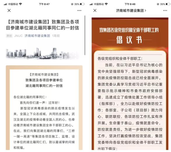 及各项目参建单位湖北籍同事同仁的一封信》,为武汉及外地务工人员送去单位关怀;发出《致pg电子