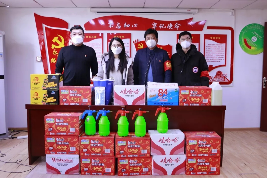 第二批下沉社区志愿服务队,向所在的济阳街道办事处城里社区捐赠口罩、消毒液、喷壶、方便面、矿泉水等爱心抗疫物资,与社区工作同志一道,筑牢社区疫情防控的坚实堡垒。