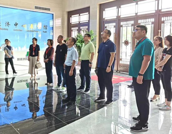 公司董事长邢宝生一行赴济北街道参观考察,在工作人员的引导和讲解下,考察团一行详细了解了济北街道的基本情况及商业业态布局,并参观了济阳总部经济中心。