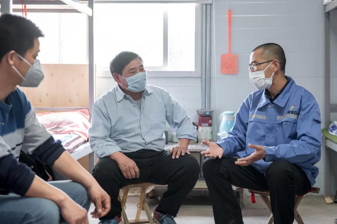 为了保障项目进度,按照计划,春节期间有60多名工人留守在了综合场站。面对突如其来的疫情,有些工人心理状态还在“春节模式”,思想不够重视,有些工人焦急万分、归乡心切,做好工人的心理安抚和疏导工作成了防疫情、保生产的重中之重。“我邀请专业人员对大家进行了疫情知识宣讲,引起他们思想上高度重视,同时注意对员工个人的谈心沟通,让他们务实收心,调整好工作状态,起到了不错的效果”,作为在工地上摸爬滚打了十几年的人,马年先对工人的谈心能做到要言不烦、一语中的,让全员吃下了了一颗“定心丸”。