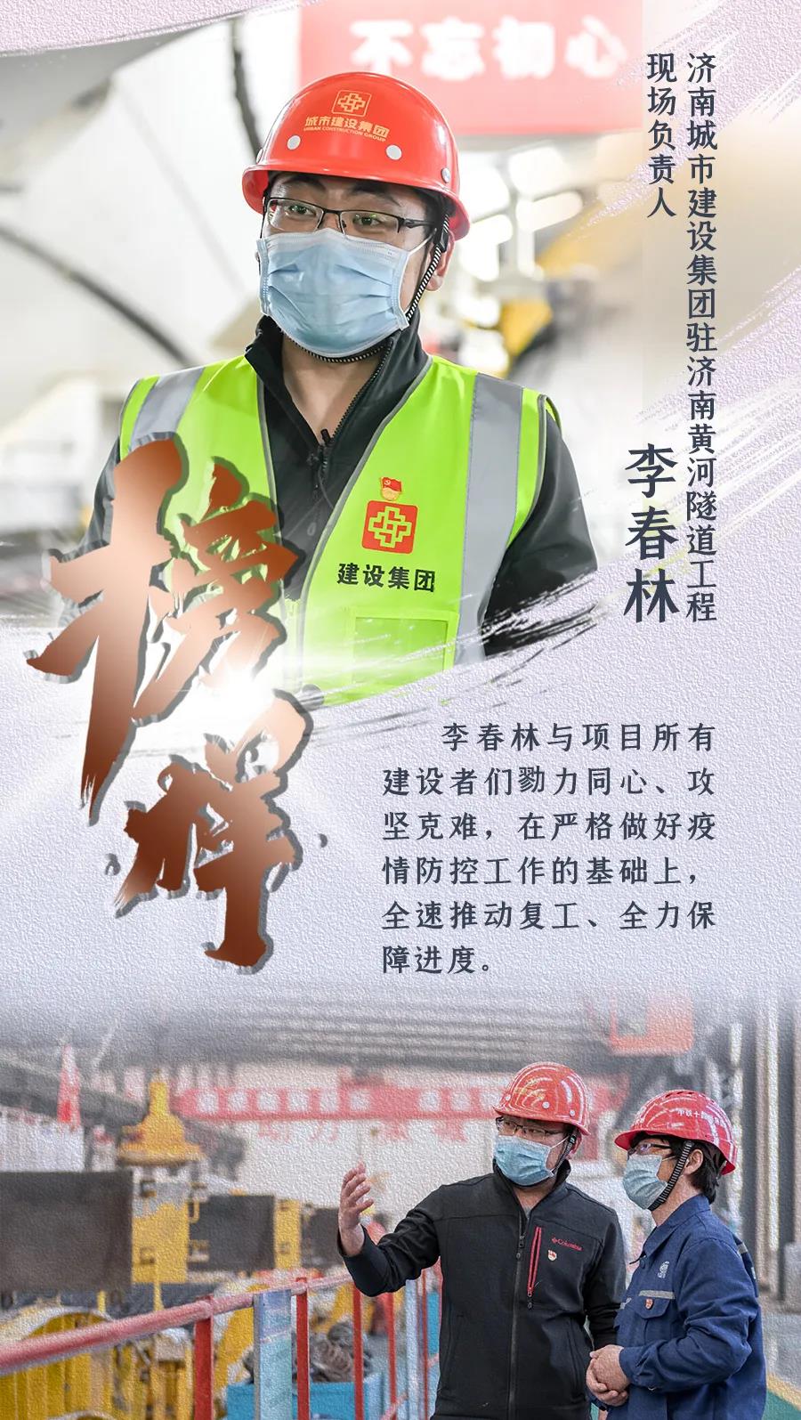 项目现场负责人李春林与项目所有建设者们勠力同心、攻坚克难,在严格做好疫情防控工作的基础上,全速推动复工、全力保障进度,“泰山号”盾构机顺利穿越黄河北岸大堤,各项工作有序推进,“穿黄”先锋们吹响防控、生产“双胜利”战斗号角,为按期完成建设任务打下了坚实基础。