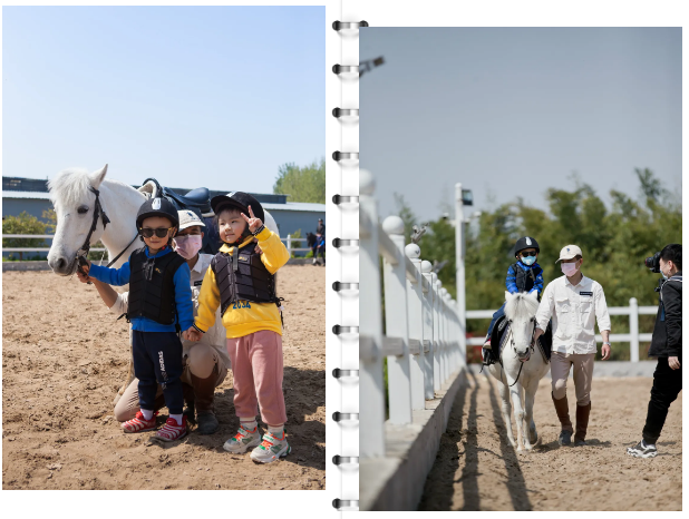 上午,他们首先来到湿地公园内的国际马术交流中心,该中心是一家专业从事英式马术教学和体验为主的一体化研学基地,拥有纯汗血宝马、温血马、弗里斯兰等世界各级名马,马术交流中心拥有专业的教学团队、场地以及优美的自然环境。他们在参观完马场后,在专业教练的陪同下佩戴好马术护具,依次上马骑行,上了人生第一节马术课。
