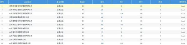 所属济南海河建设项目管理有限公司以信用评价满分100分、信用评价AAA的成绩在参与评价的170家监理单位中位列第一。建筑信用评价评分表由黑名单、扣分项、加分项3个评价指标组成,海河公司在黑名单指标中包含的7项内容、扣分项指标包含的86项内容中无一失分,并在综合实力、工程质量、安全文明生产等6个加分项中屡获殊荣。