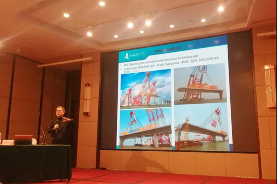 有限公司副总工程师(原港珠澳大桥管理局总工办副主任)谢红兵作了《港珠澳大桥桥梁建设实践》专题报告,主要介绍上部结构钢桥选择背景,设计施工重难点及科技创新。