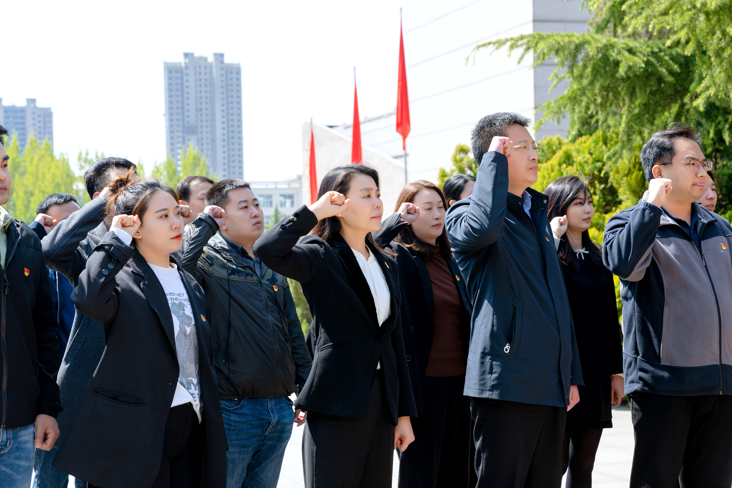 在革命烈士纪念碑旁,全体党员面对党旗庄严宣誓,重温入党誓词,时刻提醒自己所肩负的神圣使命和责任,始终牢记党员身份、对党忠诚。