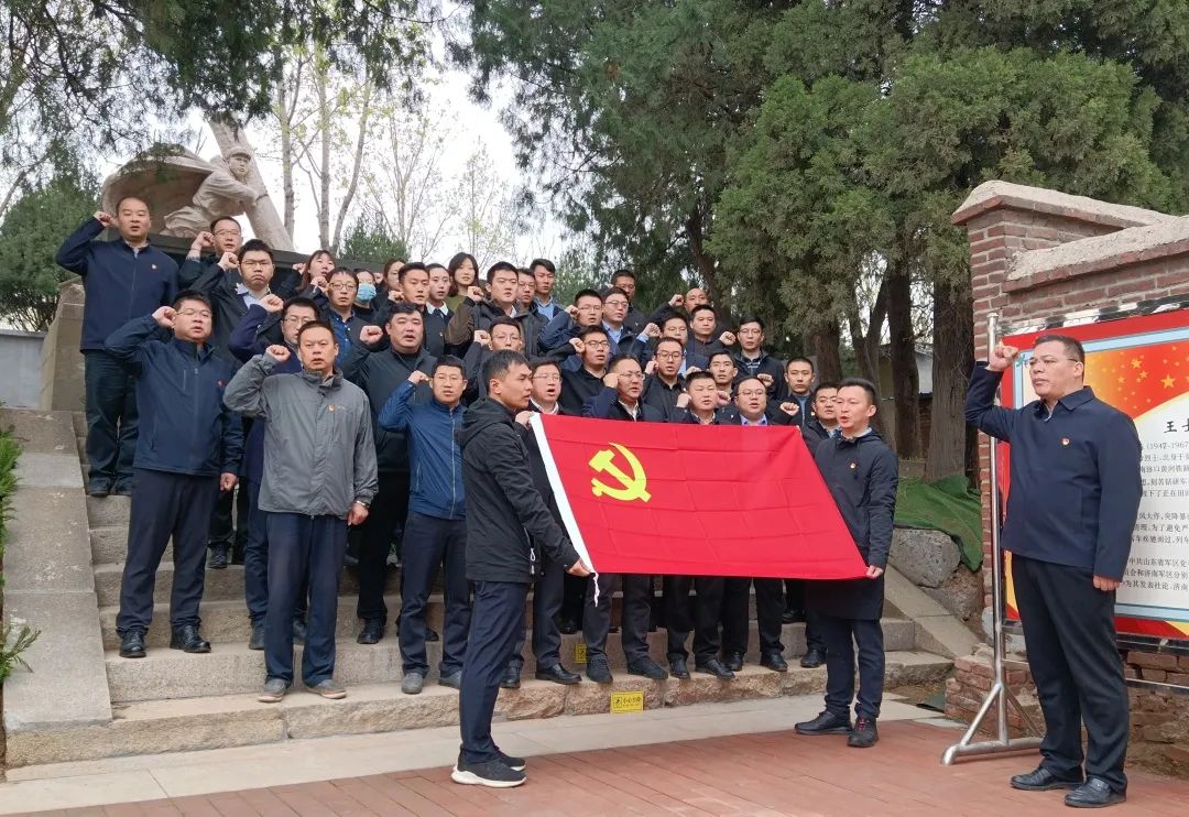 活动中,党员代表向王士栋烈士敬献花篮,党员们瞻仰烈士纪念碑、深情缅怀烈士功绩、寄托哀思并在中国共产党党旗的见证下,重温入党誓词。
