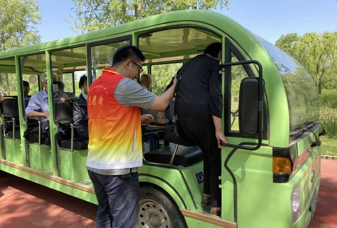 为充分保障游园老人的健康安全和游览秩序,党员志愿者们按照分工安排,责任明确到人,有条不紊开展帮助工作,为老人提供专项服务,此外,工作人员为老人准备了轮椅、水、口罩、等物品,同时配备医疗人员为老人安全游览保驾护航。在志愿者的帮助下,老人们安全、有序游览济西湿地,感受自然美景的同时也舒缓了心情。