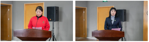 会议中,优秀部门代表郭峰、员工代表王丽娟及金龄之星代表朱秋彤作表态发言。