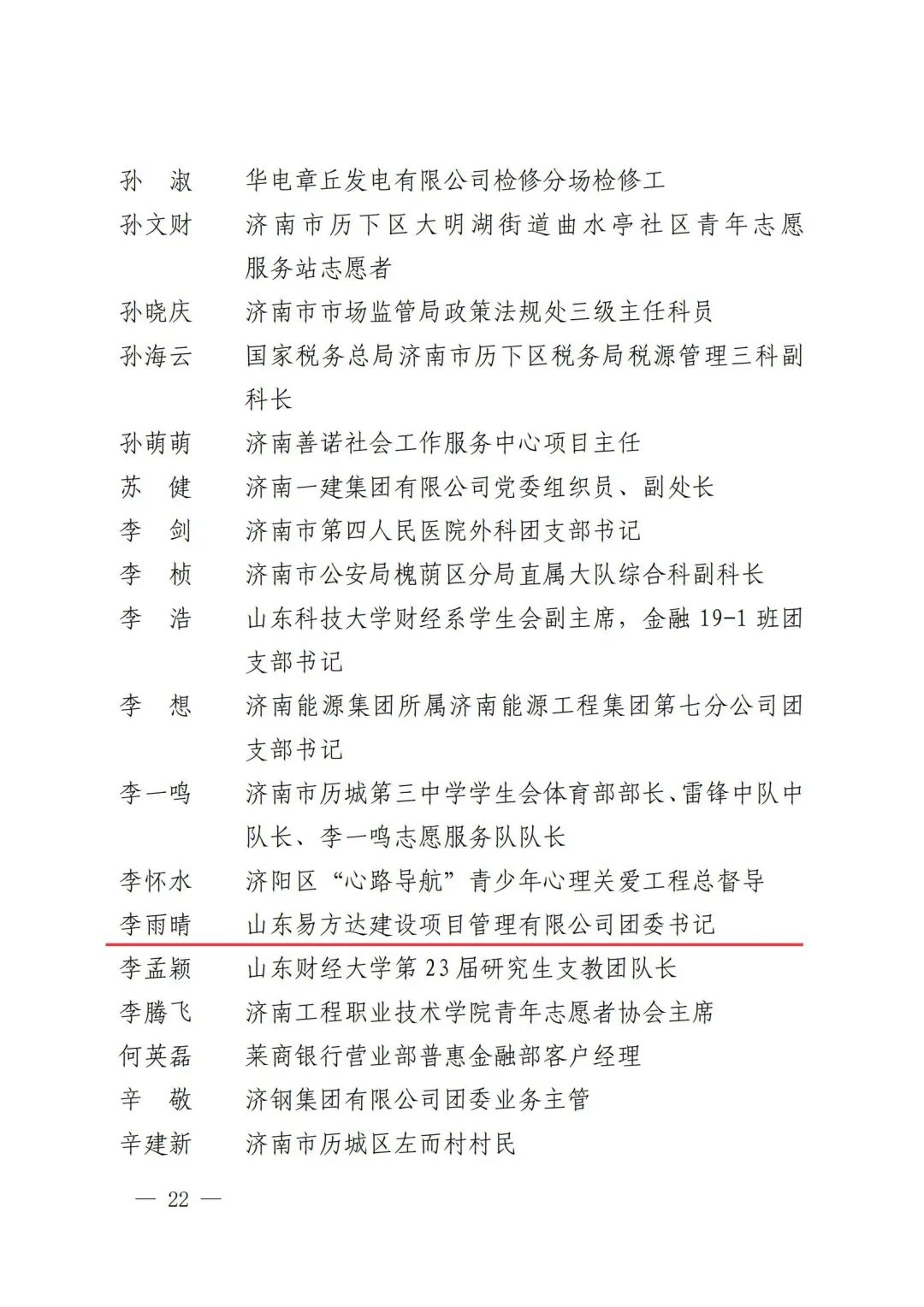 团委所属团组织及团员青年荣获“济南市五四红旗团组织”“济南市青年志愿服务先进个人”“济南市优秀共青团员”“济南市优秀共青团干部”等4项荣誉称号。