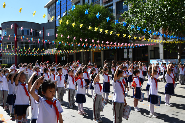 的关爱和祝福,祝愿孩子们开心快乐成长。孩子们用整齐的少先队礼回应志愿者,稚嫩的童颜上洋溢着灿烂的笑容。