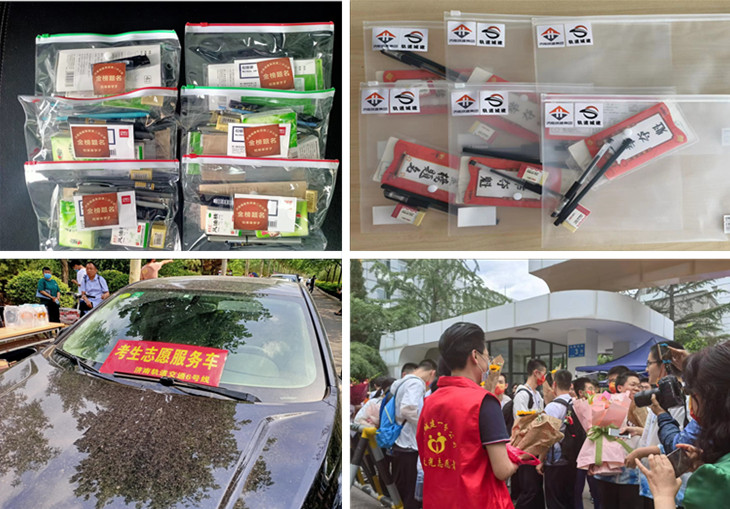 志愿者们早早来到各考点搭帐篷、摆放桌椅、布置爱心服务站,热情地向广大考生、家长、交警、环卫工人送上矿泉水、口罩,为考生及其家长提供休息区和防暑降温物品并自发组织车辆开展“爱心送考”提供免费送考服务,用实际行动送去一份清凉与关爱。此外,一分公司“微光”志愿服务队别出心裁地为部分考生准备了一束向日葵,寓意着“一举夺魁”,送出最诚挚的祝福。