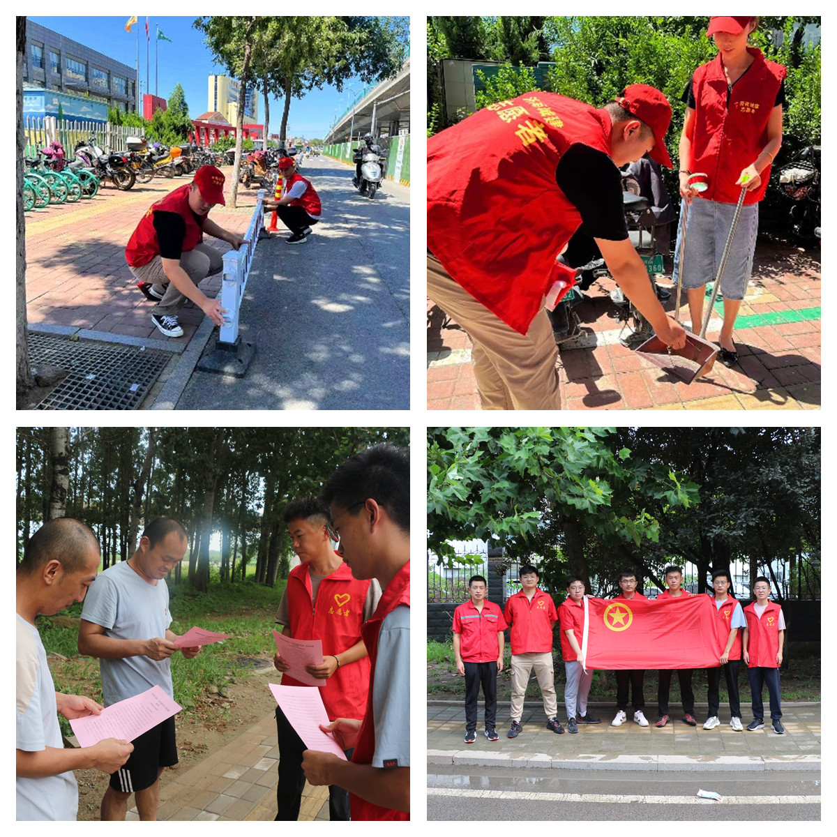 志愿活动中,大家身穿红马甲,拿着垃圾夹、垃圾袋等清洁工具共同清扫了小区道路及绿化带的垃圾,彻底清除了卫生死角,确保路面无垃圾、无杂物,同时对周围自行车乱停放问题进行了整理,进一步净化公共环境。