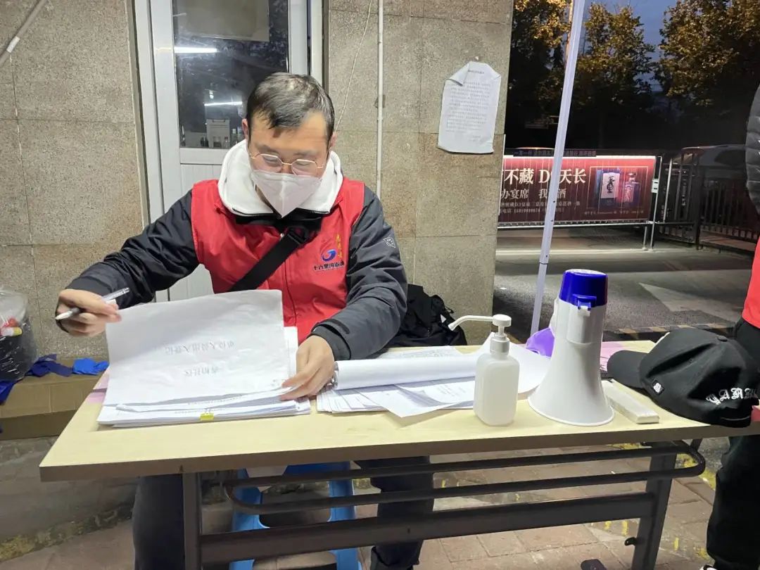 在接到抗疫任务的当天下午,荣峰与领秀城秀柏社区书记完成对接,了解具休情况。“此次我们服务的两个小区分别为14区和西三区,14区现居住3850人,西三区现居住3600人左右,人员相对密集”,荣峰说道。荣峰立即组织9名小组成员林星艳、吴瑶、许庆鹏、王鹏、赵延广、马富宝、郭涛、刘康杰、丁鹏文兵分五组,对出入登记、扫码、运送物资、核酸检测、卫生消杀等一系列工作进行详细分工。